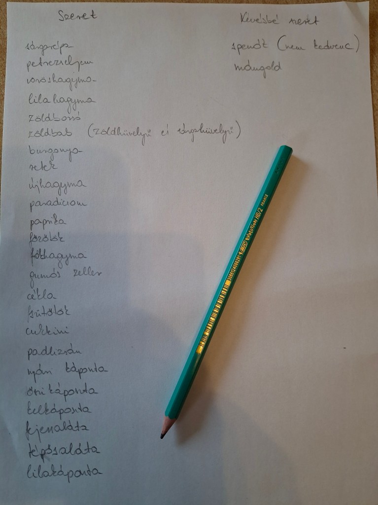 Fogjunk egy nagy papírlapot és kezdjük felírni egyik oldalára, hogy melyek azok a zöldségek, amelyeket a család szívesen fogyaszt? Biztosan akadnak olyanok, amelyek nem kedvencei a család minden tagjának, ezeket jelöljük meg. Ne feledkezzünk meg a gyümölcsökről és a savanyúságokról, fermentált zöldségekről sem. Törekedjünk arra, hogy minden hozzávalót meg tudjunk termelni magunknak.