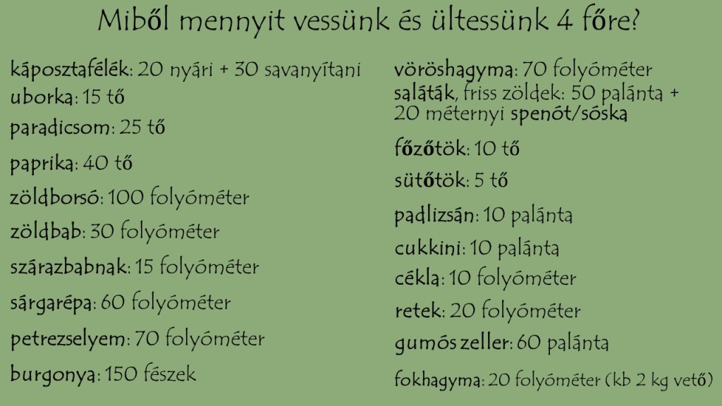 Ha a saját kertedben megtermelt zöldséget szeretnéd frissen enni és eltenni is a téli időszakra, de nem tudod, hogy miből és mennyire van szükséged egy négyfős családnak, akkor jó helyen jársz! Megmutatom én hogyan készülök a szezonra és miből, mennyit tervezek, hogy egész évben a saját zöldségeinket ehessük.